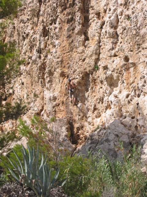 zuerst kommt ein "Turm" mit den letzten normalen Routen. wenn du an denen klettern willst musst Miroslav "eintritt" bezahlen. er verkauft auch führer (irgendwo hab ich ihn, aber ist gerade unauffindbar..) gleich anschliessend beginn der DWS Sektor.