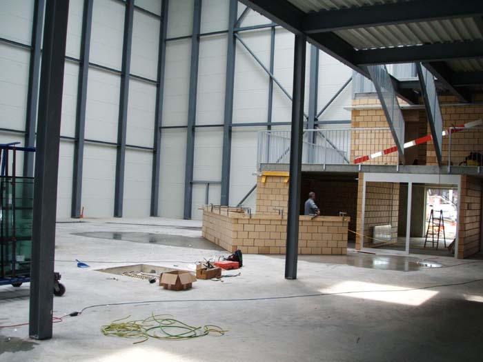 klar man hätte noch vieles andere anders oder schöner machen können. da nun aber die spenden nicht gerade im überflüss flossen, mussten wir ne strikte kosten - nutzen -rechnung machen.--> und schliesslich sind wir ja weder restaurant noch bar, sondern ne kletterhalle. und bei der kletterwand wollten wir keine abstriche machen - schliesslich ist's ja die, die zählt! (keine angst, im rohbau sieht alles etwas stier aus...)