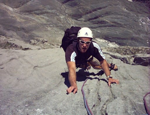 Dafür wurden wir mit 20 Seillängen bombastischem Fels belohnt. Wer seine Nerven für den Klettergarten wieder mal auffrischen möchte ist in dieser Tour gerade richtig. 10 Meter Runouts im siebten grad auf einer kompakten Kalkschnaflerplatte sind nichts aussergewöhnliches. Nach sechseinhalb Stunden Klettern war die 600 Meter Wand bezwungen und das eigentliche Abenteuer, nämlich das Abseilen begann. Mit diversen Nearmiss -wie man in der Fliegerei zu sagen pflegt- durch Steinschlag, oder sonstigen Malheurs wie Seilverklemmer in Länge 14 kamen wir nach guten 2 Stunden dann doch noch sicher beim Einstieg wieder an.