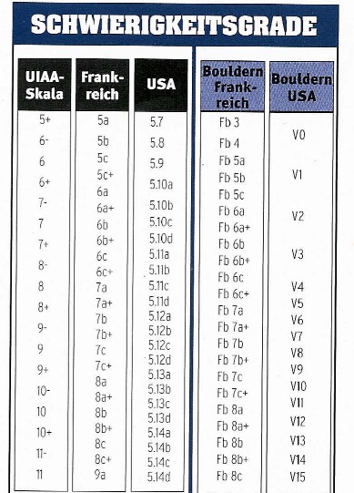 dazu hier zwei pdf-files. das eine zeigt die verschiedenen boulderbewertungen, das andere die verschiedenen routenbewertungen.